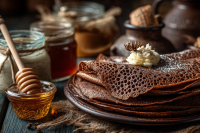 Снимаю с огня и сразу добавляю 0,5 ч. л. соды, 1 ч. л. молотой корицы, 1 ч. л. молотого имбиря, 1 ч. л. какао-порошка и щепотку мускатного ореха. Интенсивно перемешиваю — масса начнёт пениться и темнеть. Оставляю остывать 5–7 минут.