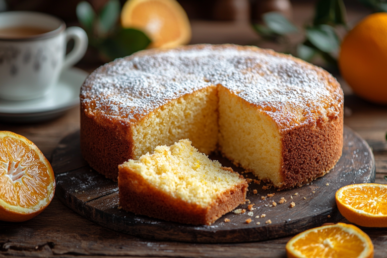 Получается обалденная вкуснятина: золотистая, румяная корочка, а внутри — нежный влажный мякиш с кусочками апельсиновой мякоти и тонким ароматом цедры.