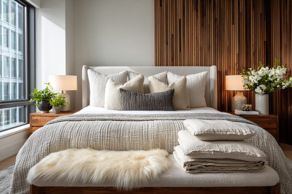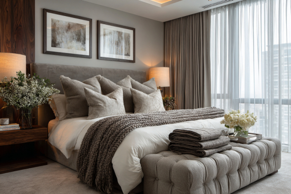 Сатин — другая история. Здесь нити переплетаются реже, что даёт характерный блеск и шелковистую поверхность. Сатин мягче, теплее и приятнее на ощупь, чем перкаль, но требует чуть более бережного ухода. Именно с сатина чаще всего начинают те, кто хочет ощущение «как в хорошем отеле» дома. Хороший сатин из длинноволокнистого хлопка — это почти безупречный выбор для спальни.