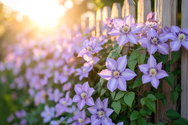 Клематис легко и быстро оплетет любую опору — забор, арку, беседку, создав плотную живую ширму. Его посадка требует немного внимания: выберите солнечное или слегка затененное место с хорошо дренированной почвой, при посадке заглубите корневую шейку и обеспечьте надёжную опору. Дальнейший уход сводится к поливу в засуху, подкормкам в сезон и обрезке.