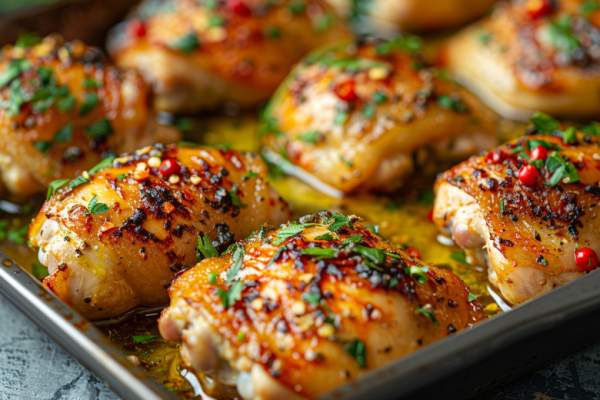 Совет от шефа: Используйте густой греческий йогурт — он лучше обволакивает мясо и не даёт ему тушиться. Для хрустящей кожицы перед закладкой в духовку промокните курицу салфеткой.